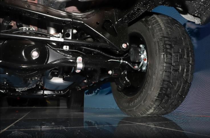 动力方面,新车提供标准的2.0T燃油和2.4T柴油两套动力选择,其中2.0T汽油版最大功率167kW,峰值扭矩387N·m;2.4T柴油版最大功率137kW,峰值扭矩490N·m,其中柴油版比较适合极寒环境,低速大扭矩和压燃启动可以让冰雪脱困更轻松。此外,新车还保留了非承载式高强钢底盘,搭配前后桥差速锁,以及2.64倍扭矩放大分动器,赋予车辆超强的扭矩刚度和脱困能力,即便单轮着地也能轻松脱困。