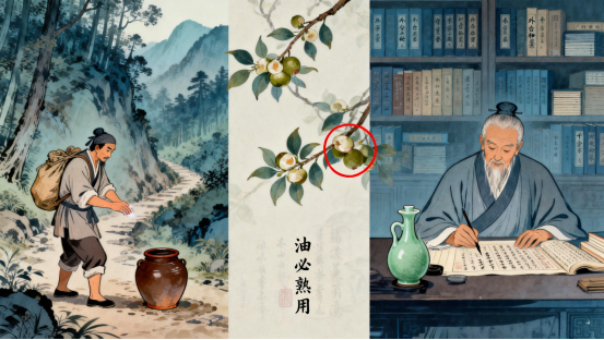 从《黄帝内经》的“熟与生”之辩,到孙思邈的“油必熟用”之规,再到南方山村农妇的陶罐里的茶油膏,茶油的热榨工艺,是中国千年医食文化的结晶。它不是被发明的,而是被“教育”出来的;不是因为工艺复杂,而是因为医理所需。今天,当我们拿起一瓶热榨茶油时,我们握住的不仅是一瓶油,更是一份跨越千年的智慧——这份智慧,藏在《黄帝内经》的竹简里,藏在孙思邈的典籍中,藏在南方山村的茶籽林里。它告诉我们:食物的价值,从来不止于口感;油脂的选择,从来都是对身体与自然的尊重。让我们一起,品味茶油背后的千年医食密码,感受医食同源的文化底蕴。这,就是茶油留给我们的文明礼物。《AI 内容原创声明》