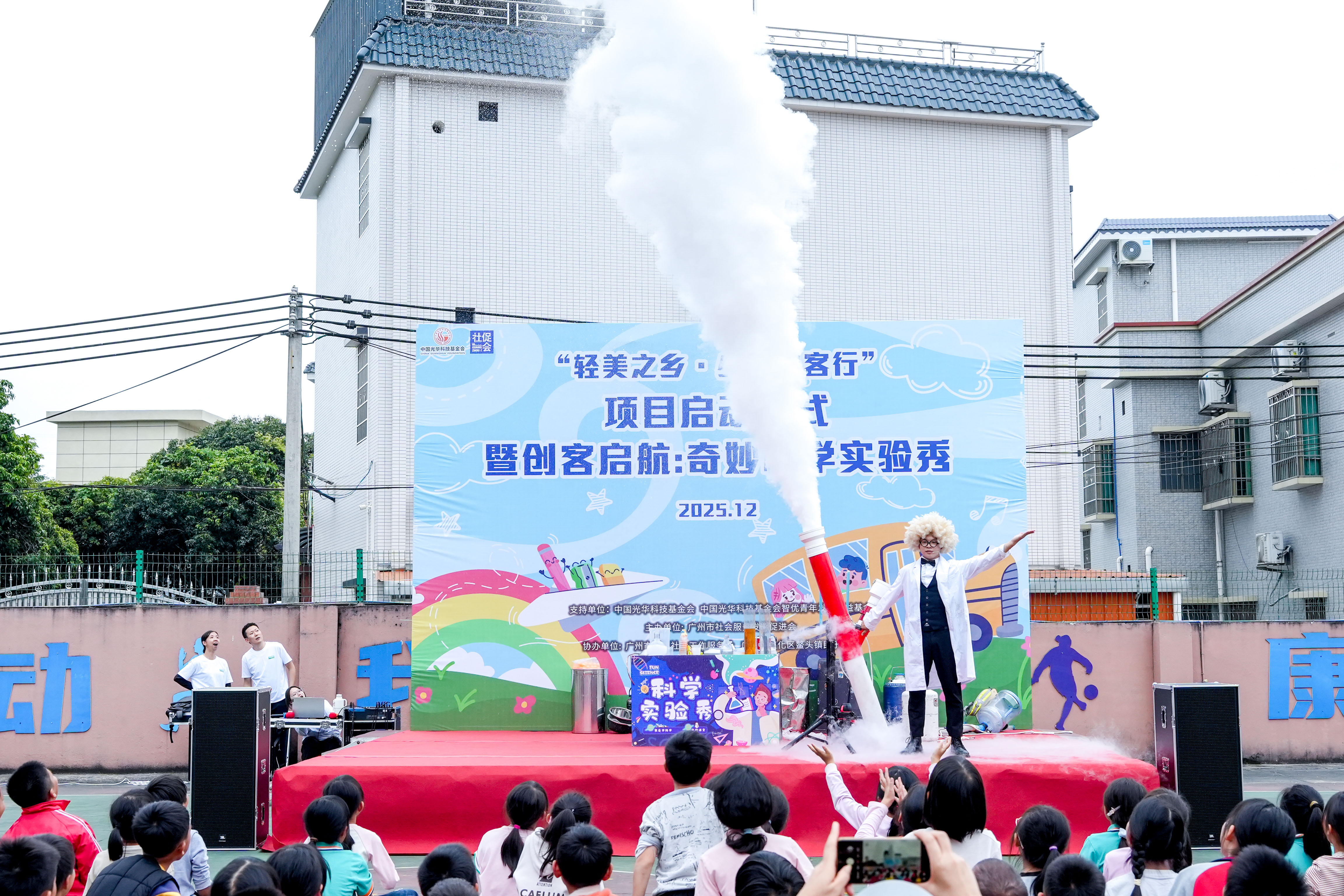 本次活动由中国光华科技基金会、中国光华科技基金会智优青年发展公益基金支持,广州市社会服务发展促进会主办,并得到了鳌头镇民乐小学的全力协同。与面向中学生的探索性活动不同,小学场活动定位为“科学游乐园”,所有环节均针对低龄儿童的认知特点进行定制,更侧重于激发低龄学生对科学的兴趣,培养其观察力、动手能力和协作精神。