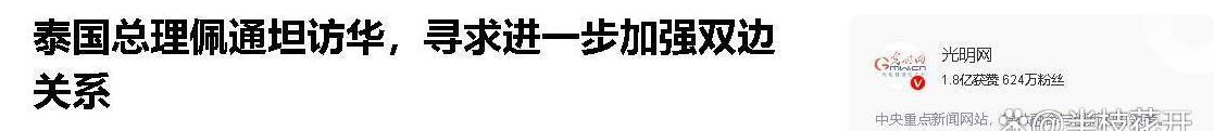 今年是我国与泰国建交50周年,这一年对两国而言都具有重要的象征意义。就在昨天下午,泰国现任总理佩通坦亲自到访我国。