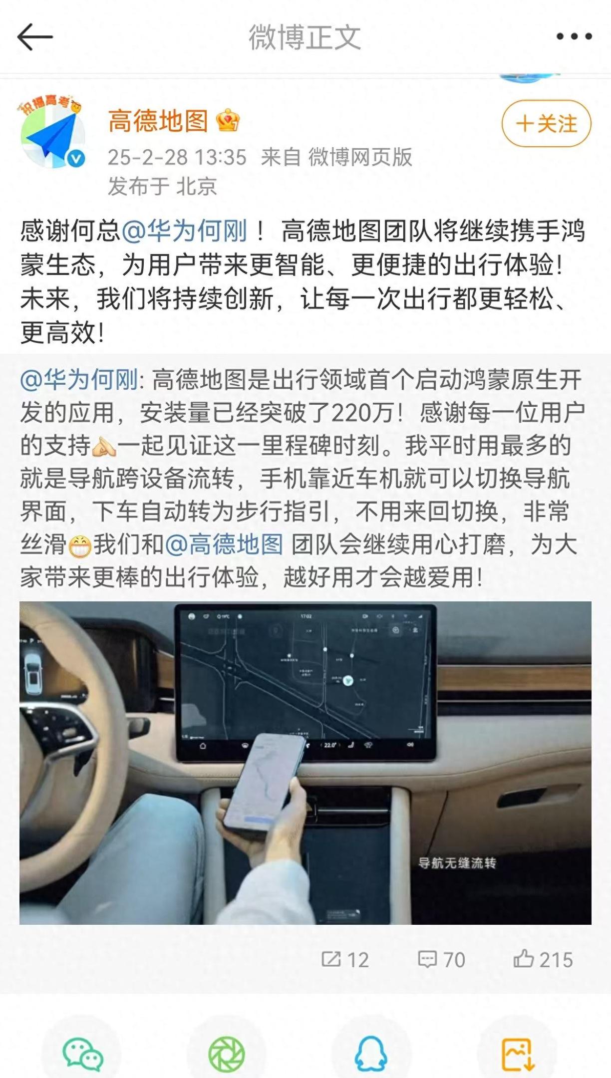 上周他从朋友那儿得知了一个信息:鸿蒙原生版高德地图居然下载量已经突破了220万次。