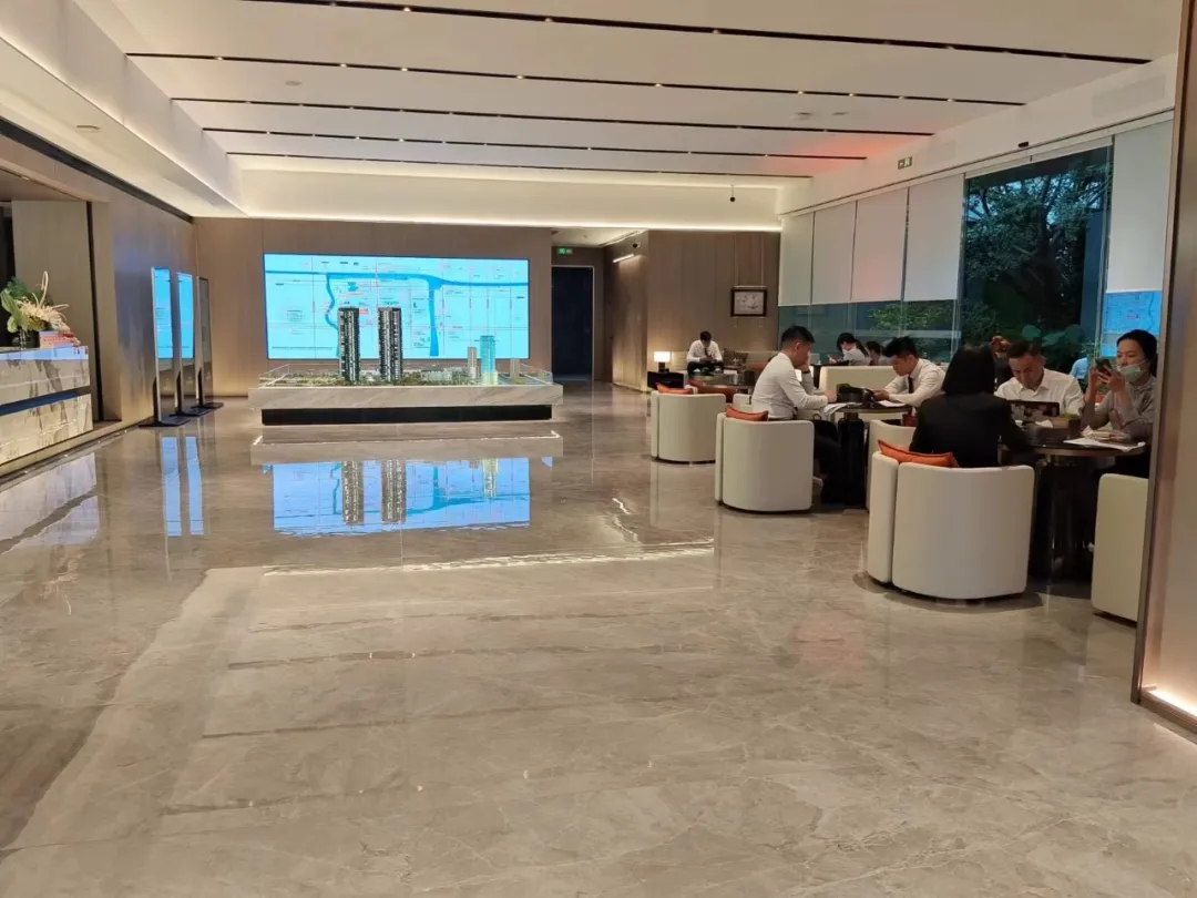 广州保利·和颂售楼处是从广州天斯项目搬运而来。这套售楼部在天斯项目服务八个月后,现在到新项目重新焕发生机,重复使用了二次!这种模式大大地减少了地产公司的成本支出;是绿色建筑、低碳建筑强有力的实践。