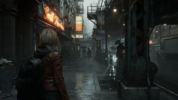 由于《生化危机:安魂曲》并未内置基准测试工具,因此测试在游戏中进行,地点为“浣熊市”,章节为“前往孤儿院”。需要注意的是,由于《生化危机:安魂曲》采用了系列经典的线性箱庭设计,因此在不同场景下的性能表现有较大差距。例如在游戏序章“前往鹪木旅馆”的霓虹灯遍布的街景中,图形压力最大,帧数几乎只有室内简单场景的一半。因此我们选择的测试场景介于二者之间,既会经过相对复杂的室外场景,也会经过简单的室内场景,同时还有对显卡压力较大的“焚烧车辆”画面,一定程度上具有代表性。