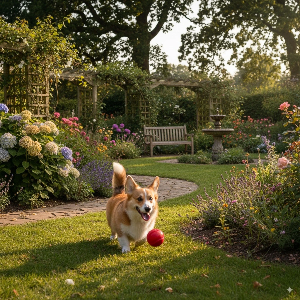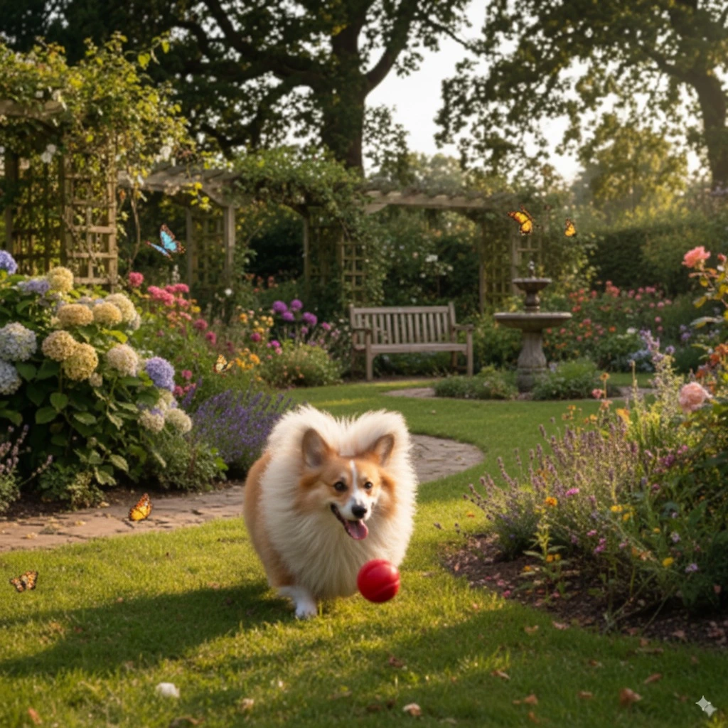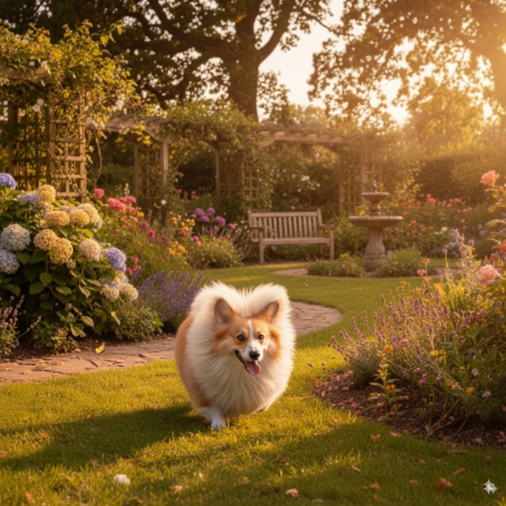 第二轮(基于初始输出): 很好!现在让柯基的毛发看起来更蓬松一些,并且添加一些飞舞的蝴蝶。