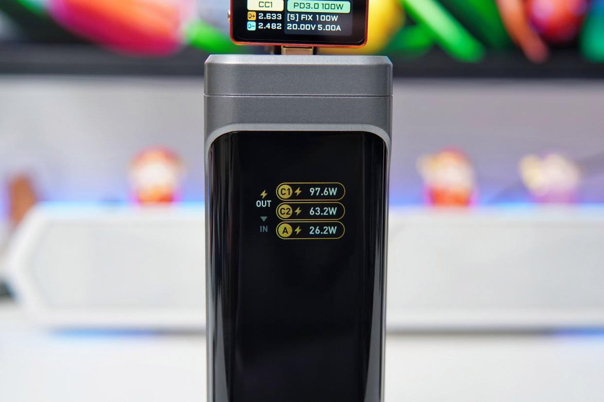 ▲像前文提到的,奥海310W星舰Pro能量舱最高可以支持140W+140W+30W=310W的功率输出,每个口都可以实现满功率。我这里用奥海310W星舰Pro能量舱同时为支持100W、65W和26W的充电设备充电,都可以轻松跑到满功率,不在话下。
