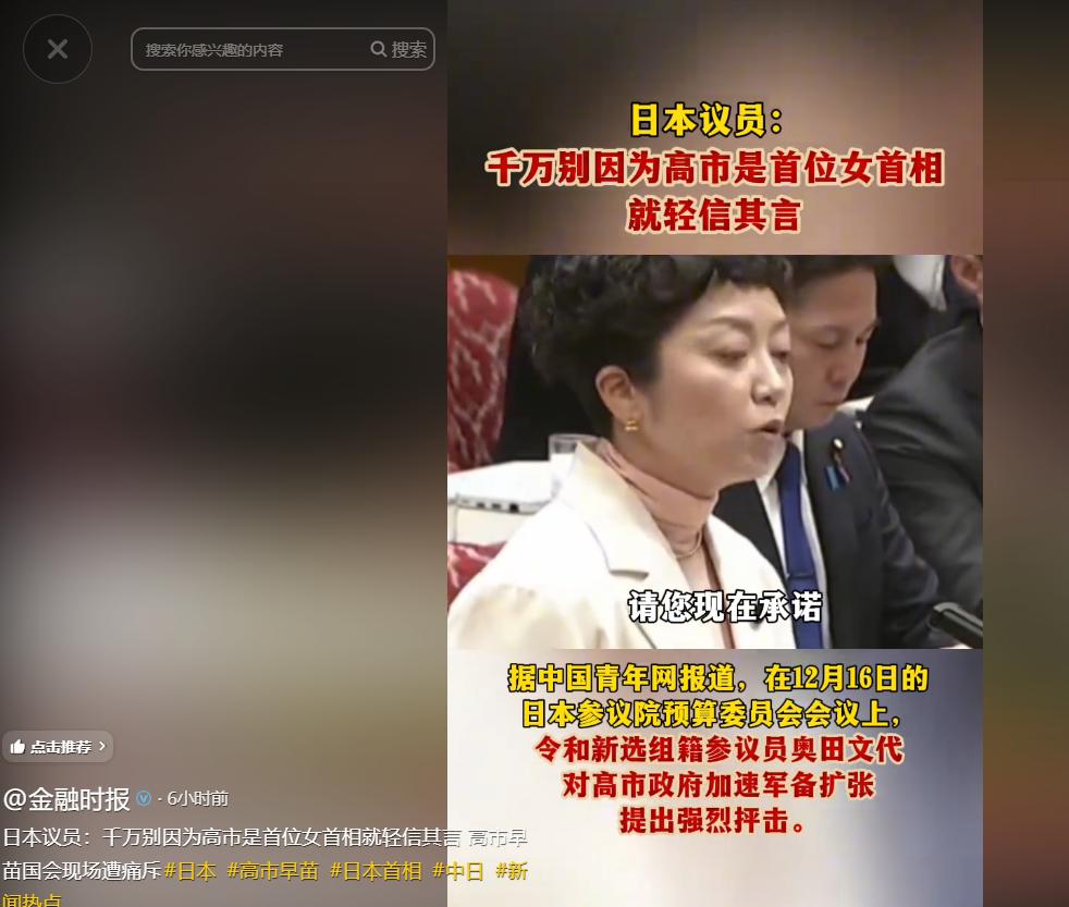 在今年12月的议会答辩上,就有多位日本议员公开炮轰高市早苗。