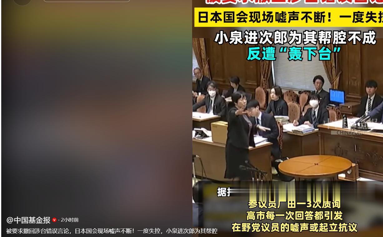 更绝的是,当身为盟友的小泉进次郎想要帮助高市早苗“狡辩”时,甚至当场就被多位愤怒的日本议员轰了下台,由此可见日本内部对高市早苗的不满达到了何种地步。