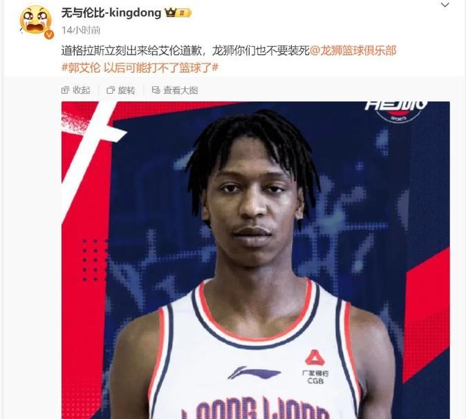 有个网友在网上爆料说,是外援道格拉斯把郭艾伦的眼睛弄伤的,还说当时球队根本没停训练,也没人陪郭艾伦去医院。这话说的,听着就让人生气。要是真是这样,那这球队也太不像话了,好歹郭艾伦也是球队的主力球员,受这么重的伤,怎么能不管不顾呢?不过话说回来,这种网上爆料的东西,也不知道真假,可能是郭艾伦的粉丝看不过去,故意这么说的。