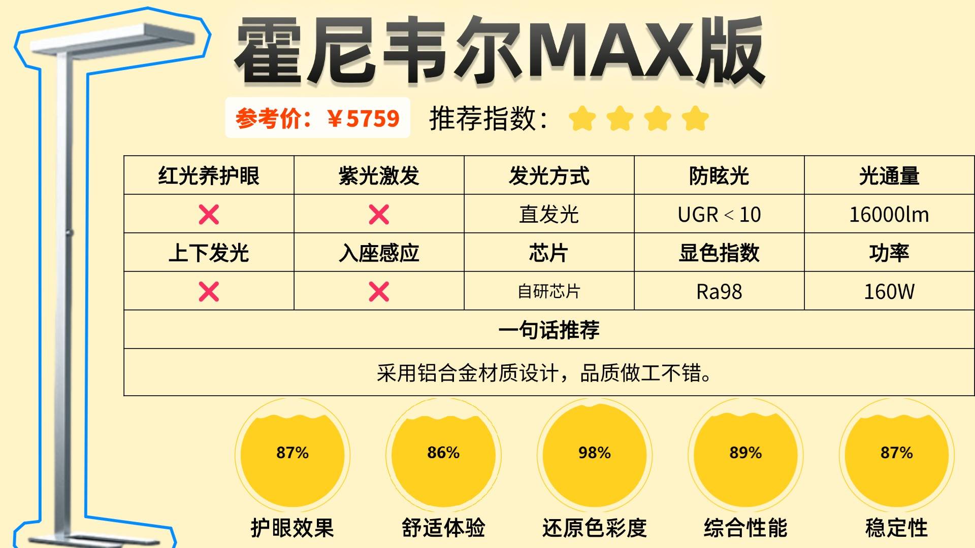 护眼大路灯排行榜第三名:霍尼韦尔Max版;采用铝合金材质设计,品质做工不错。