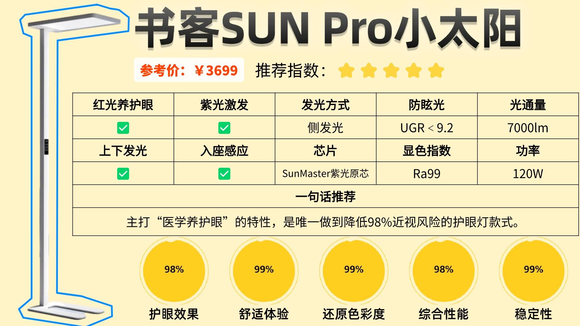 护眼大路灯排行榜第五名:书客护眼大路灯SUN Pro小太阳;出口欧美多年的专业老牌子,有效降低98%近视风险!
