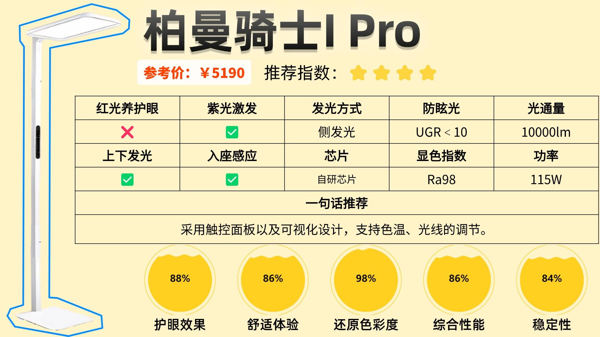 护眼大路灯排行榜第四名:柏曼骑士I Pro