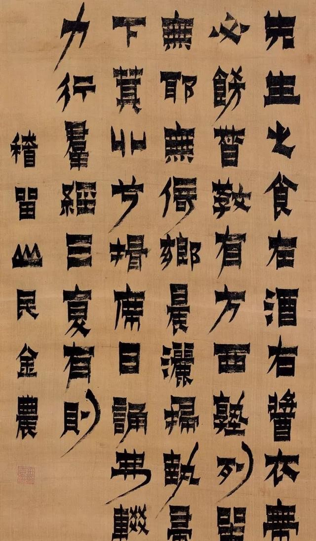 (图注:截毫平刷,浓墨如漆——金农以漆书开创了清代书法的叛逆之路。)