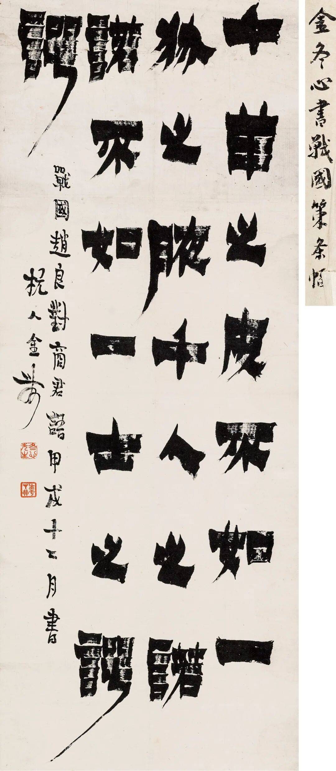 而他们的背后,是那个时代书家共同的追求——直指本心,自证自悟。康有为评邓石如如儒家之孟子、禅家之大鉴禅师,这句评语其实也适用于金农和伊秉绶。他们都是“直指本心”的创造者,都在古老的金石中找到了与自己灵魂对话的方式。