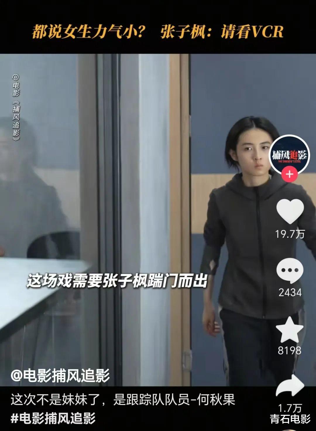 张子枫在电影中一改之前的甜美邻家少女形象,变成了一名又酷又飒的女警。