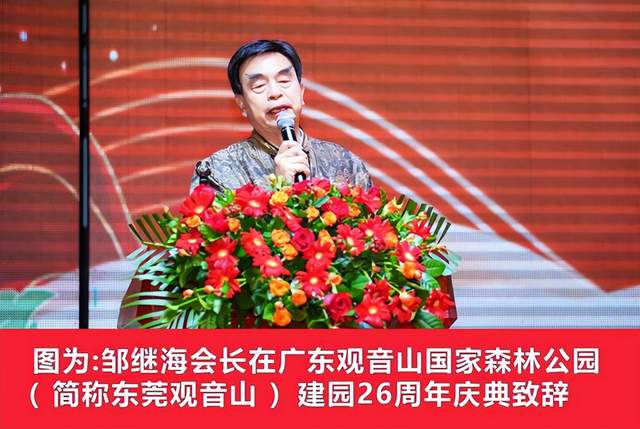 2025年12月1日,恰逢广东观音山国家森林公园(简称东莞观音山)建园26周年庆典,以下为邹继海会长庆典致辞: