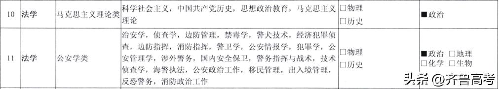 强制选政治的倒是有需要值得注意的,其中公安学类被强制要求选科政治。这在考生报考公安类型的提前批志愿时要格外注意,公安类型的招生分为公安学类和公安技术类,可以粗略的理解成文官和武官的区别。如果考生有意向在未来报考提前批的公安一定要格外注意。