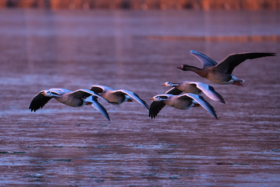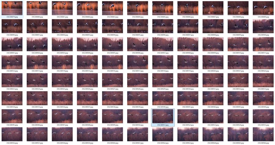 比如上面这组拍摄鸿雁在水面煽动翅膀的画面时,多次因反应不及错过“舞动”的瞬间,而开启预拍摄后,即使快门稍慢一步,也能从缓存中找到最完美的姿态与环境相融合的画面,堪称 “抓拍神器”。