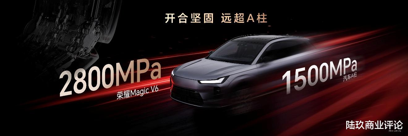 解决折叠机可靠性焦虑,还需要有架构的强大支撑。荣耀Magic V6采用了材料强度远超汽车A柱的荣耀盾构钢铰链,强度高达2800MPa。为了实现这一前所未来的强度目标,采用了与飞机起落架相同的3150吨航空级锻造工艺,综合成本达到钛合金的2倍,为折叠机“脊梁”注入最强支撑。