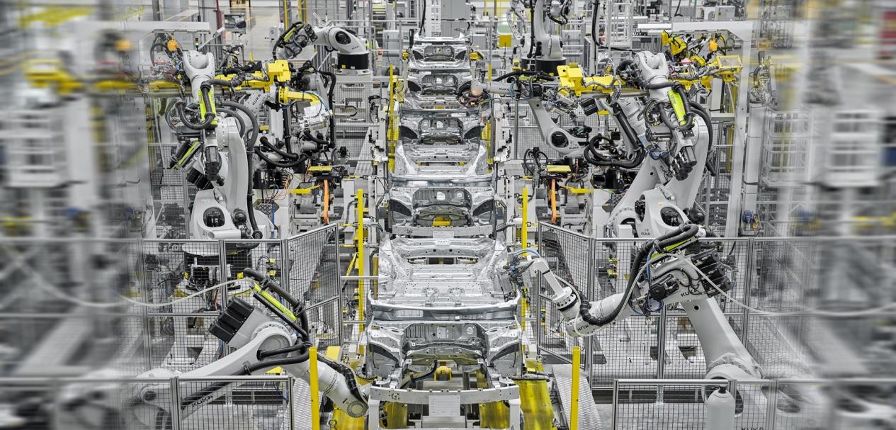 图:莲花汽车全球智能工厂焊装车间机械手臂