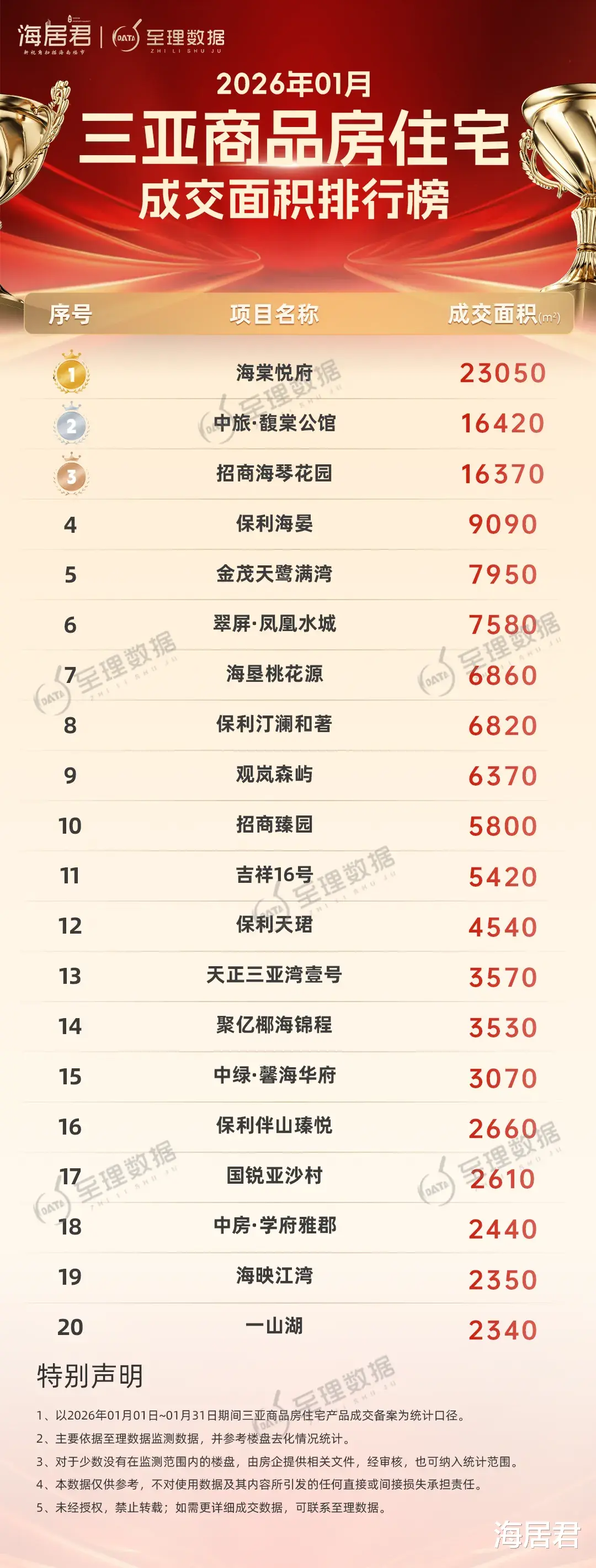 分区域看,1月份销量前20楼盘,7个位于吉阳区,天涯区和崖州区各5个,海棠区3个,海南宅地楼面价地王聚集地天涯区市场表现不错。