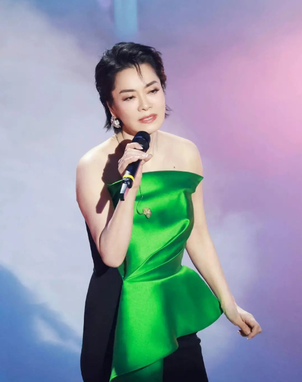 在春季的柔和阳光下,毛阿敏选择了一件绿色不规则连衣裙,如同春日里的新芽,充满生机和活力。这件裙子采用不规则的裙摆设计,流畅的线条仿佛在吟唱着春天的诗篇,既增添了几分俏皮感,也让整体造型更加生动有趣。轻柔的面料随风轻舞,仿佛拥抱了整个春天。毛阿敏以其极具个人色彩的绿色连衣裙,完美诠释了什么是与岁月抗争的风采,展现了成熟女性的别样风韵。