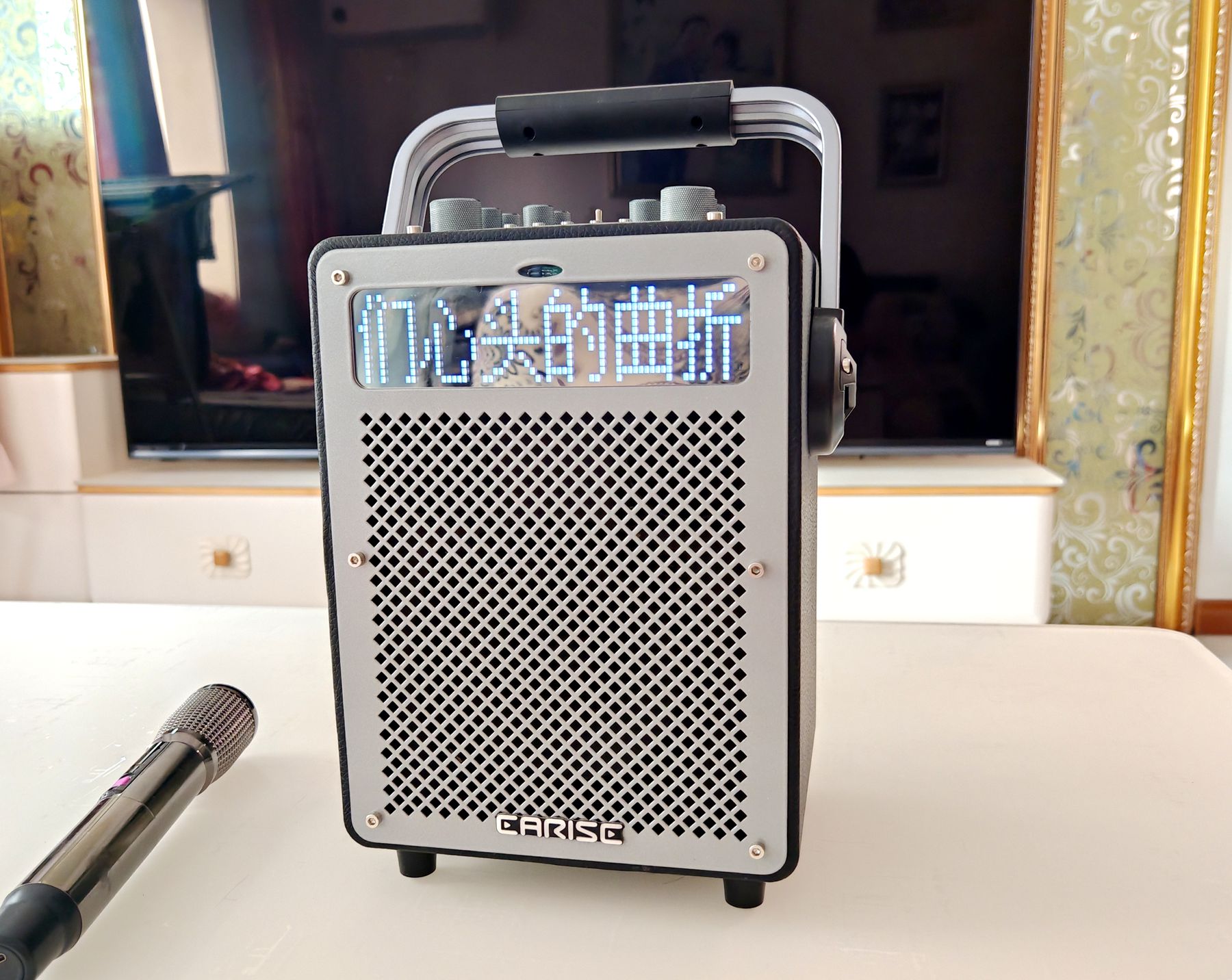 很多人会担心这款K歌设备过于笨重,其实我也有这样的顾虑,实测数据打消了这一顾虑:音箱主机尺寸为200×265×156mm,净重仅4.7公斤,搭配顶部的铝合金提手,女生也能轻松拎起,无论是家庭客厅、庭院派对,还是露营欢唱、公园聚会,拎上它就能秒变移动K歌中心。