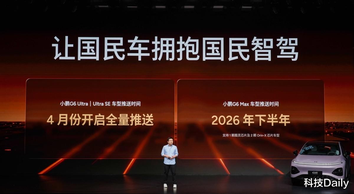 辅助驾驶方面,何小鹏称G6将第二代VLA带入20万内,Ultra、Ultra SE版本4月份开启第二代VLA全量推送,Max版今年下半年也将推送蒸馏后的版本,新版本抢先体验,再加上2250TOPS的算力,实现了充分调度,推荐选择3颗图灵 AI 芯片的Ultra版本。