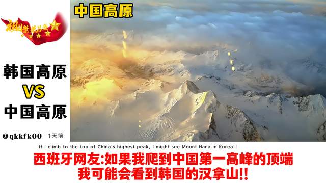 一位来自韩国的网友在看到中国高原后竟然大放厥词,评论道:“真羡慕这些雪白色的高山,怎么才能让这些属于大韩民国的人们啊!”
