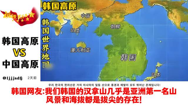 中国高原对比韩国高原,珠穆朗姆峰对比汉拿山,根本没有任何可比性。