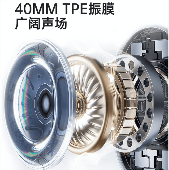 内置 40mm 镀钛振膜,专门优化了中高频的细腻度,人声还原得清晰又贴耳,细节满满还很立体。美中不足的是低频表现偏平缓,下潜深度和冲击力都差点意思,喜欢重低音的朋友可能会觉得氛围感不够强。