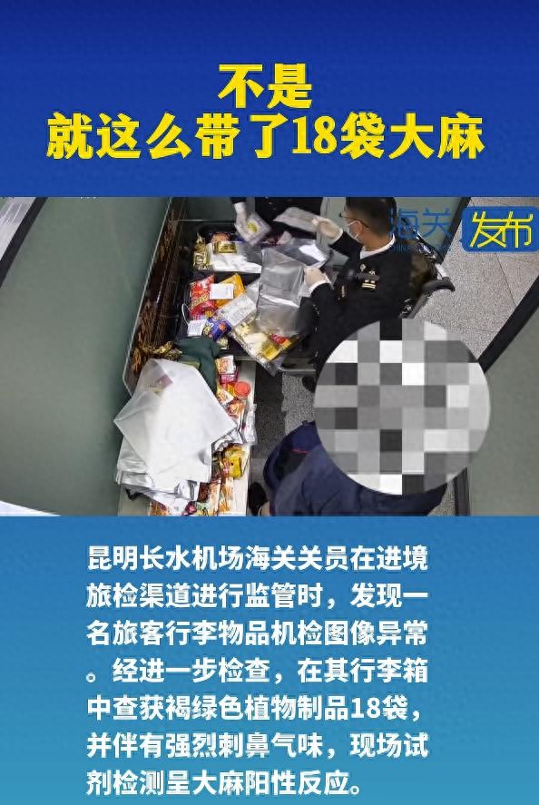 近日,昆明长水机场海关在进境旅检渠道查获毒品大麻907.4克。