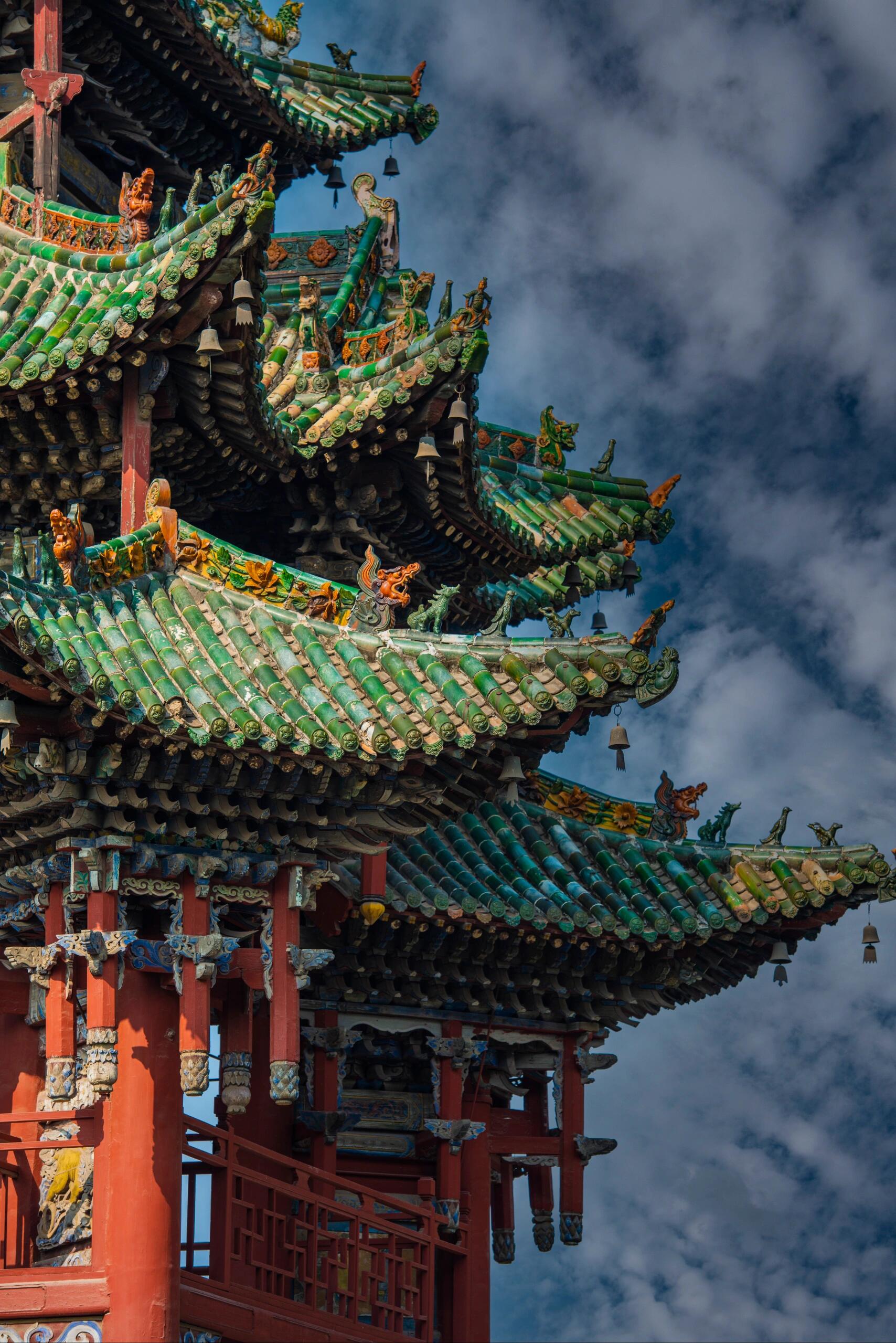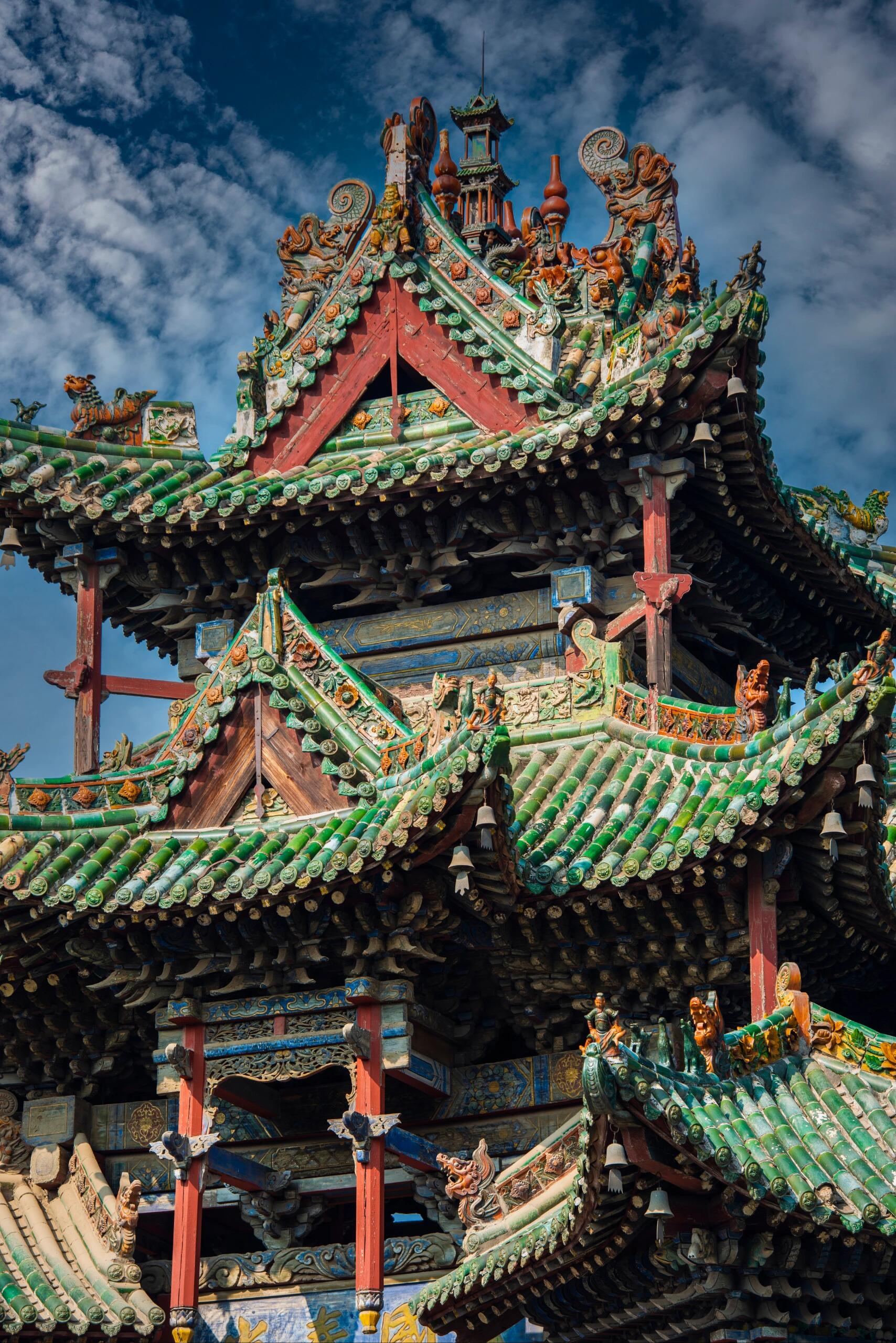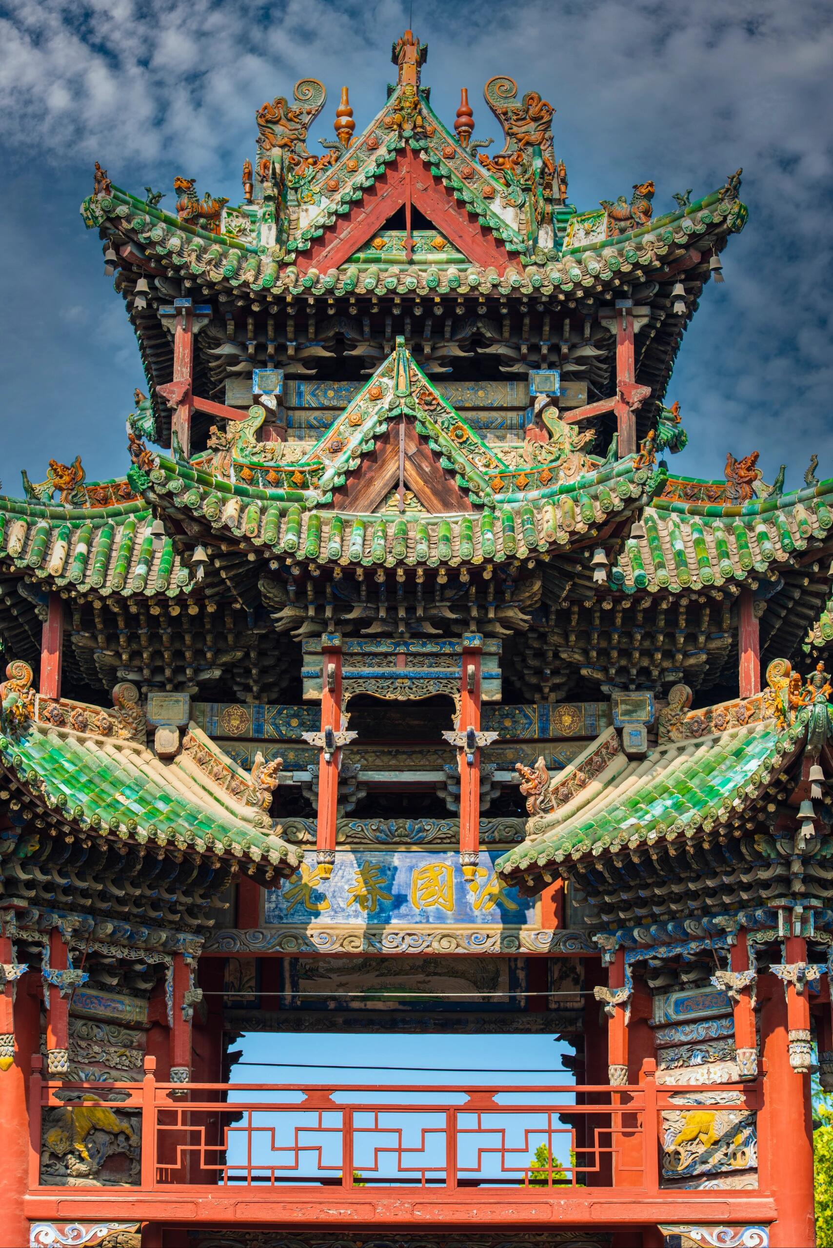 望母楼是楼阁与牌楼混合式的建筑,坐北朝南,选址和朝向都颇有讲究。它不同于一般的建筑,整座楼采用纯实木构建,在众多砖石建筑中显得尤为独特。三重檐十字歇山顶的设计,让它在外观上极具层次感和立体感。那上覆的黄绿相间琉璃瓦,在阳光的照耀下闪烁着别样的光彩。远远望去,全楼三层十一小楼,错落有致,宛如一幅精心绘制的立体画卷。