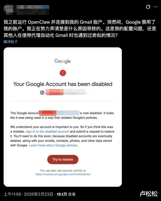 最狠的是,OpenClaw的创始人上周刚被OpenAI挖走。Google 一看:“好好家伙,你在我的地盘薅羊毛就算了,还把创始人都给撬走了”,于是直接大规模封号。