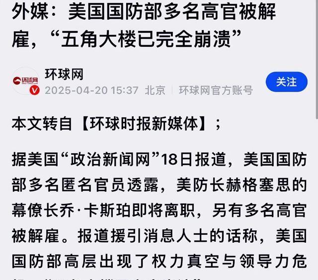 就在这个时候,美国国防部炒了三个高官鱿鱼,原因竟然是“泄密调查”。这事儿一出,五角大楼的高层就乱了套。外面的人看了都说,现在的国际局势风向可算是变了,五角大楼那是彻底乱成一锅粥了!