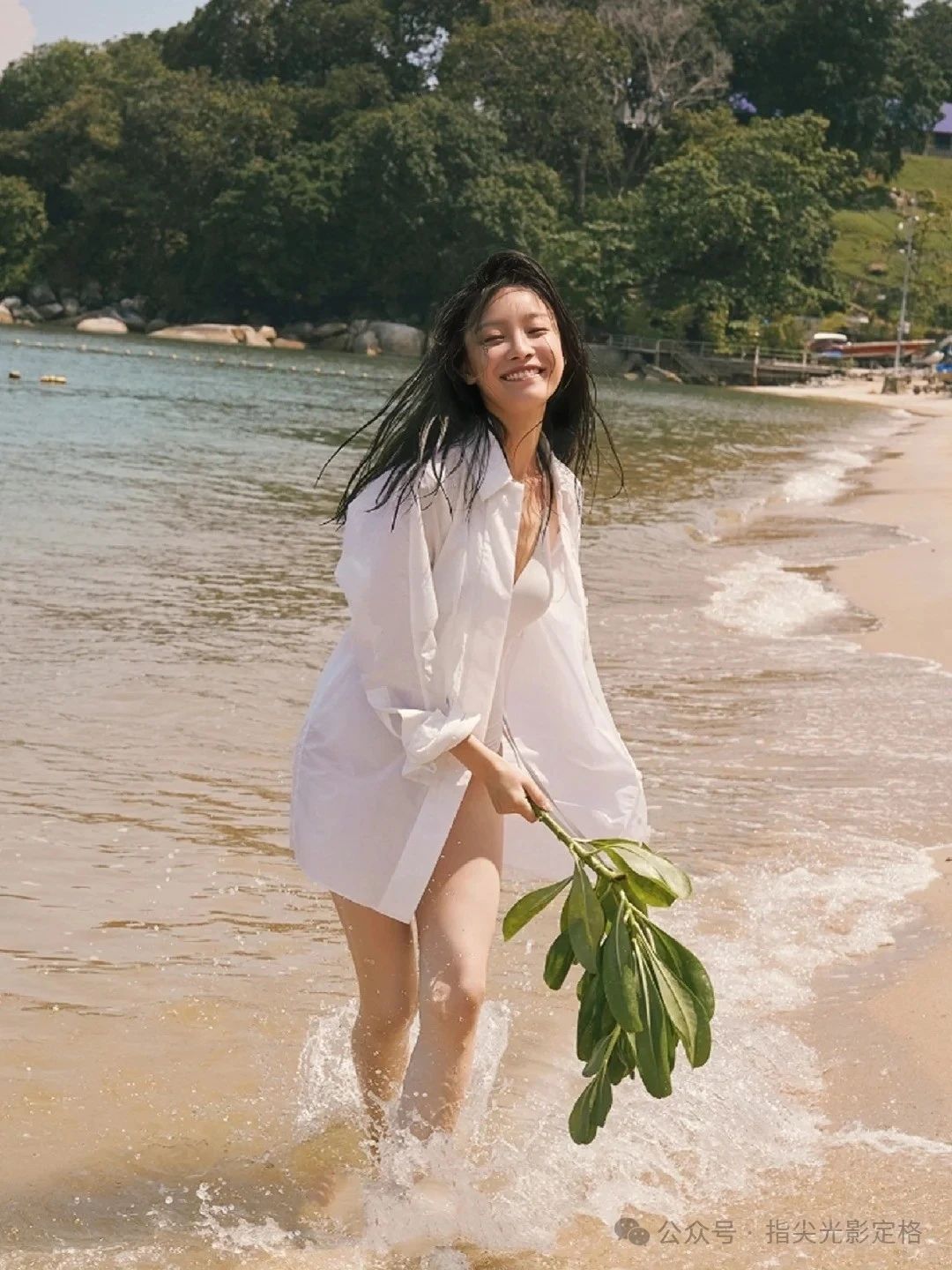 她的姿态生动、自然,仿佛在告诉我们:旅行不仅是一场身体上的迁徙,更是一次心灵的释放。