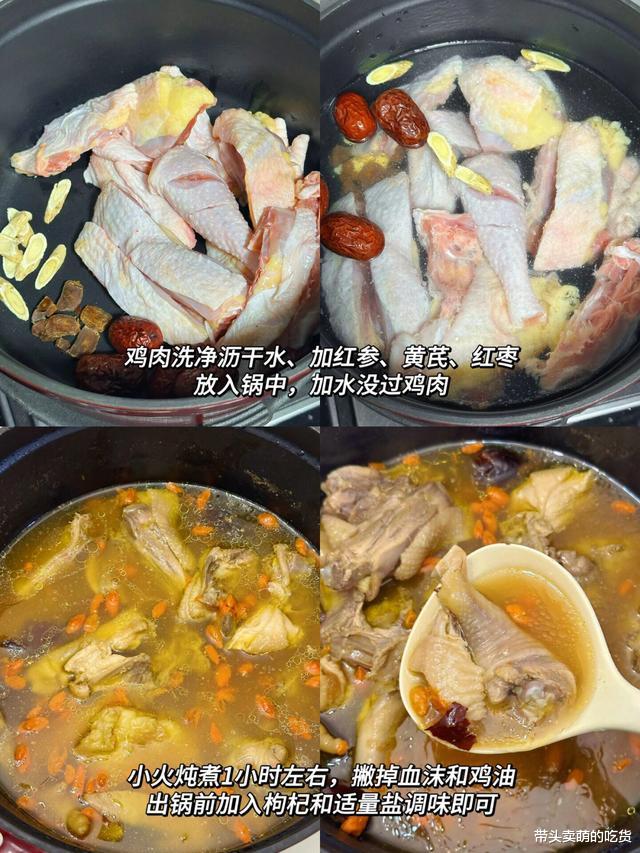 调味:炖至鸡肉酥软,用筷子能轻易穿透时,加入枸杞,继续炖煮5分钟。最后根据个人口味加盐调味,注意红参本身带有甜味,盐不宜过多。