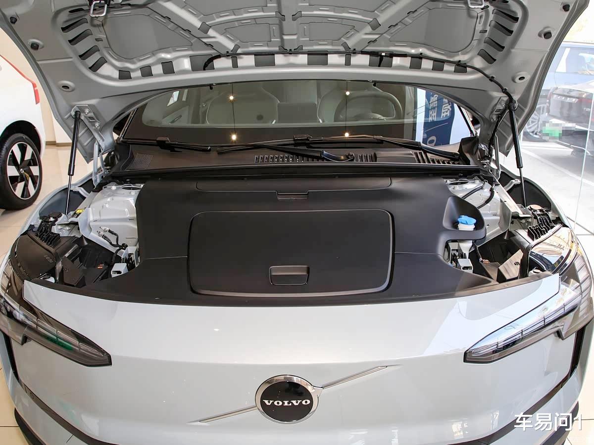 车身尺寸方面,新款沃尔沃EX30的长宽高分别为4233*1838*1555mm,轴距为2650mm。这样的尺寸决定了它的后排空间相对紧凑。从数据上看,两名成年人在后排可以舒适地落座,但如果需要满载三名乘客,横向空间会显得有些局促。后备厢常规容积为318L,放倒后排座椅后可扩展至1000L,可满足日常家用出行的行李装载,而前机舱盖下还有一个7L的储物空间,适合放置充电线或小件物品。