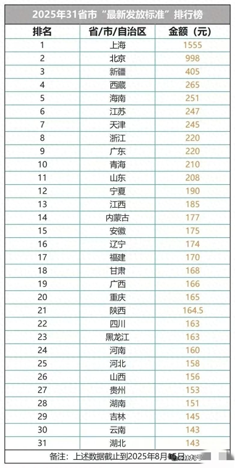很明显,排在第一名的是西藏,达到了2650元,有政策扶持。
