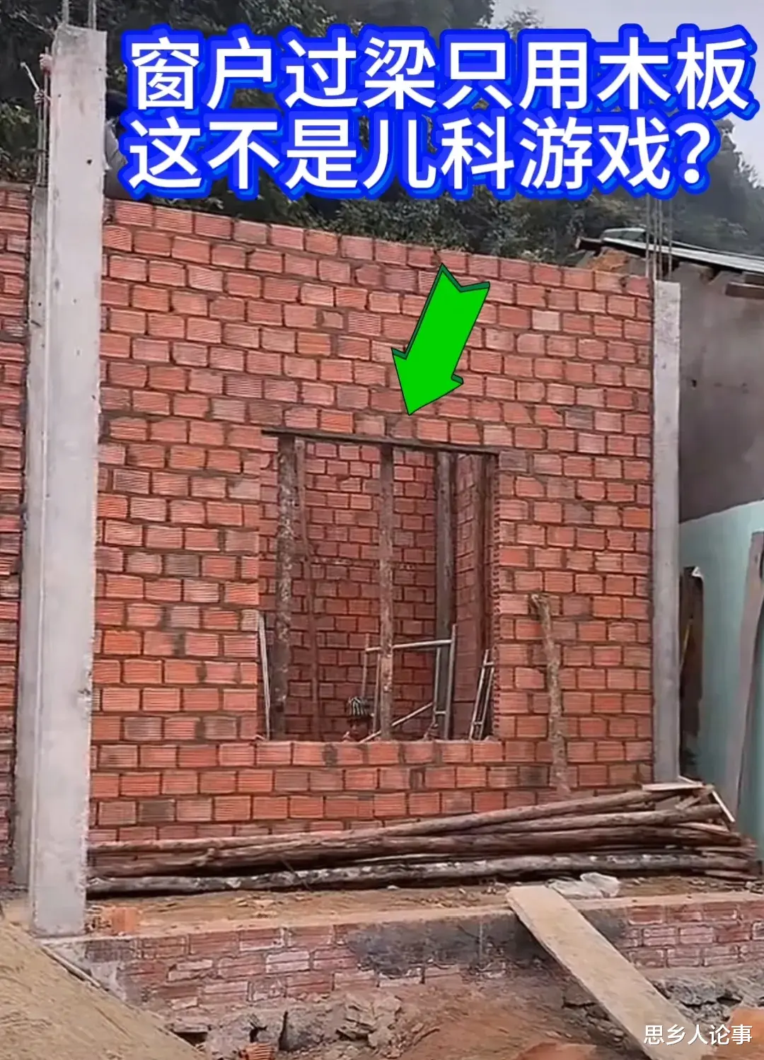 如果是中国的包工头,在则砌墙的那一刻,就会提前现浇过门梁和窗户梁…现在眼睁睁看着门窗留隐患,观众的担心也显得无能为力!