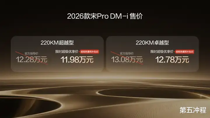 2026年1月10日,比亚迪正式宣布2026款宋Pro DM-i上新220km长续航版本,全系限时超级优享价9.98-1