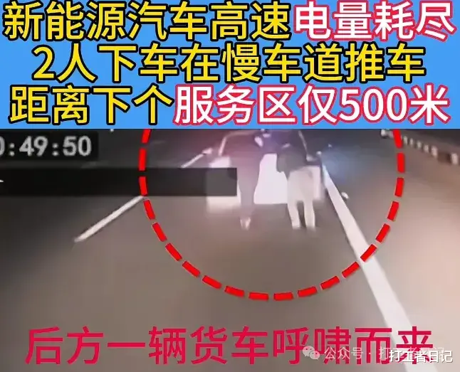 最近发生一起新能源汽车在高速上电量耗尽而导致的惨剧。一辆载客新能源汽车由于电量耗尽,司机与一乘客在慢车道上推车,被后方视