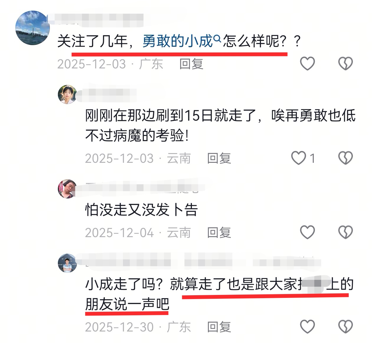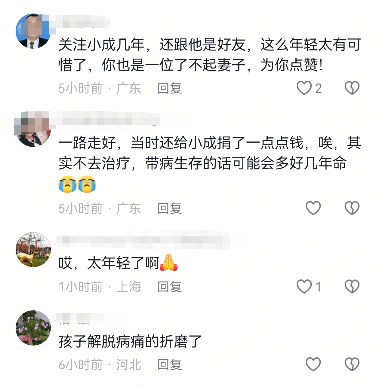 可是2025年11月份之后,成文东的社交媒体停止了更新,关注他的人大概知道发生了什么,但还是希望他的妻子能公开这条消息,也算是给长期帮助他们的人一个交代。