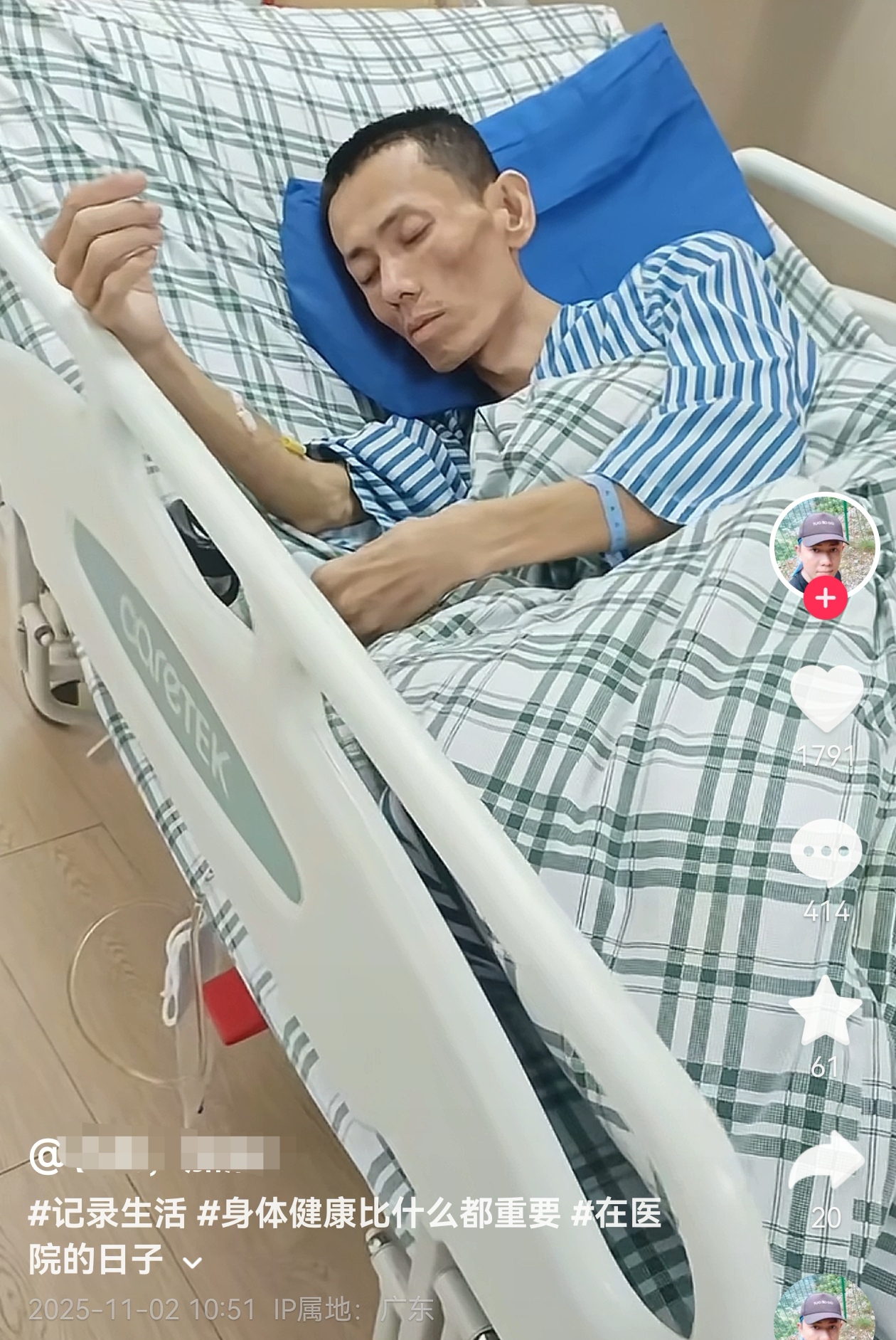 虽然一直在医院治疗,他的妻子拼命也要拯救丈夫,可最后一条视频还是定格在11月4日, 成文东说自己就像泄了气的皮球,生命气息也很微弱了,此时的他也已经皮包骨了,而且已经瘫痪在床,无法下床。