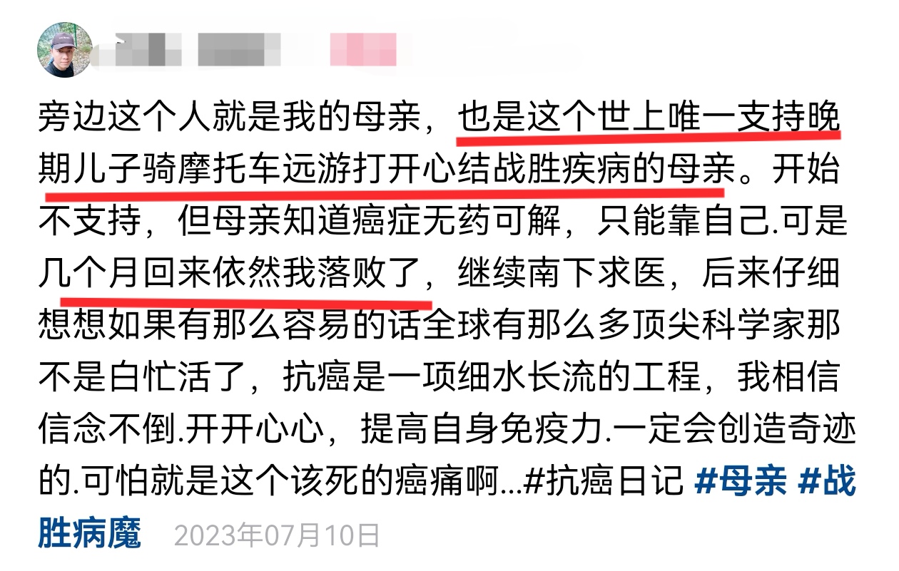 这是一个令人悲伤的结局,尽管成文东已经非常努力,从未放弃对生的希望,但人类在很多疾病面前还是很渺小,无论是骑行自救还是积极花钱治疗,都未必有好的预期。