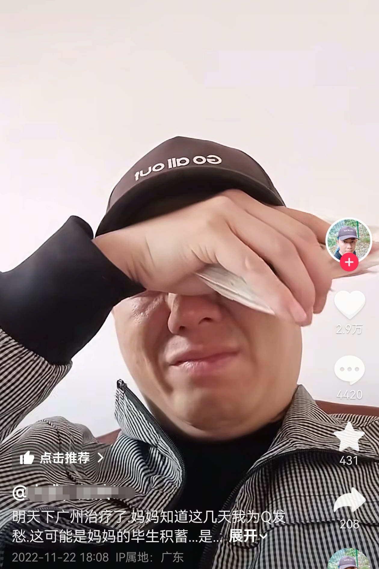 可是对于这个普通家庭来说,筹钱成了最大的难题,2022年11月份,成文东分享视频,称第二天要去广州治疗,但手上的钱不够,快70岁的母亲拿出了压箱底的积蓄,其中还有很多零钱。
