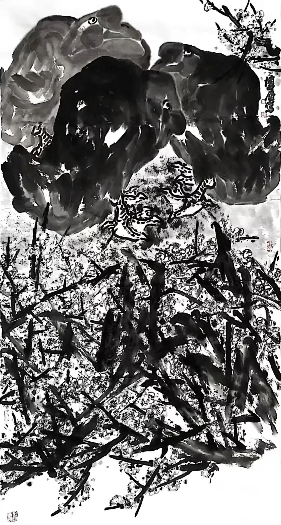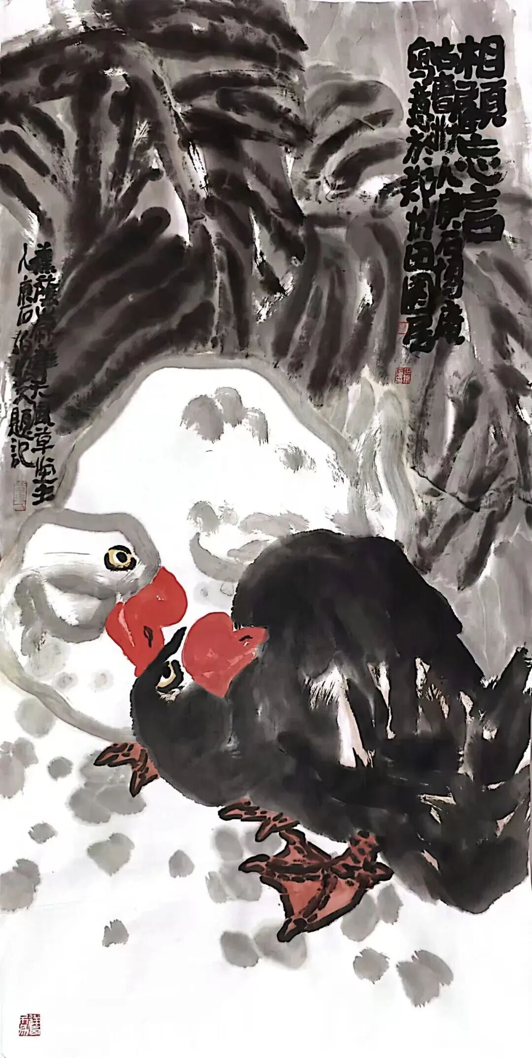 他的画风,如“地方戏里的黑头”,不事柔媚,不求甜俗,以雄强、朴茂甚至略带“拙”味的笔触,构筑起一个充满磅礴生命力的自然世界。这并非形式上的刻意求怪,而是其内在生命气质与精神品格的必然外化。正如古人所言“画乃心印”,田博庵的艺术首先印证了他作为创造者的“人”的完整与坚实:一身正气,刚正不阿,不逐时名。这份人格底色,是其艺术“高格”的第一重保障。