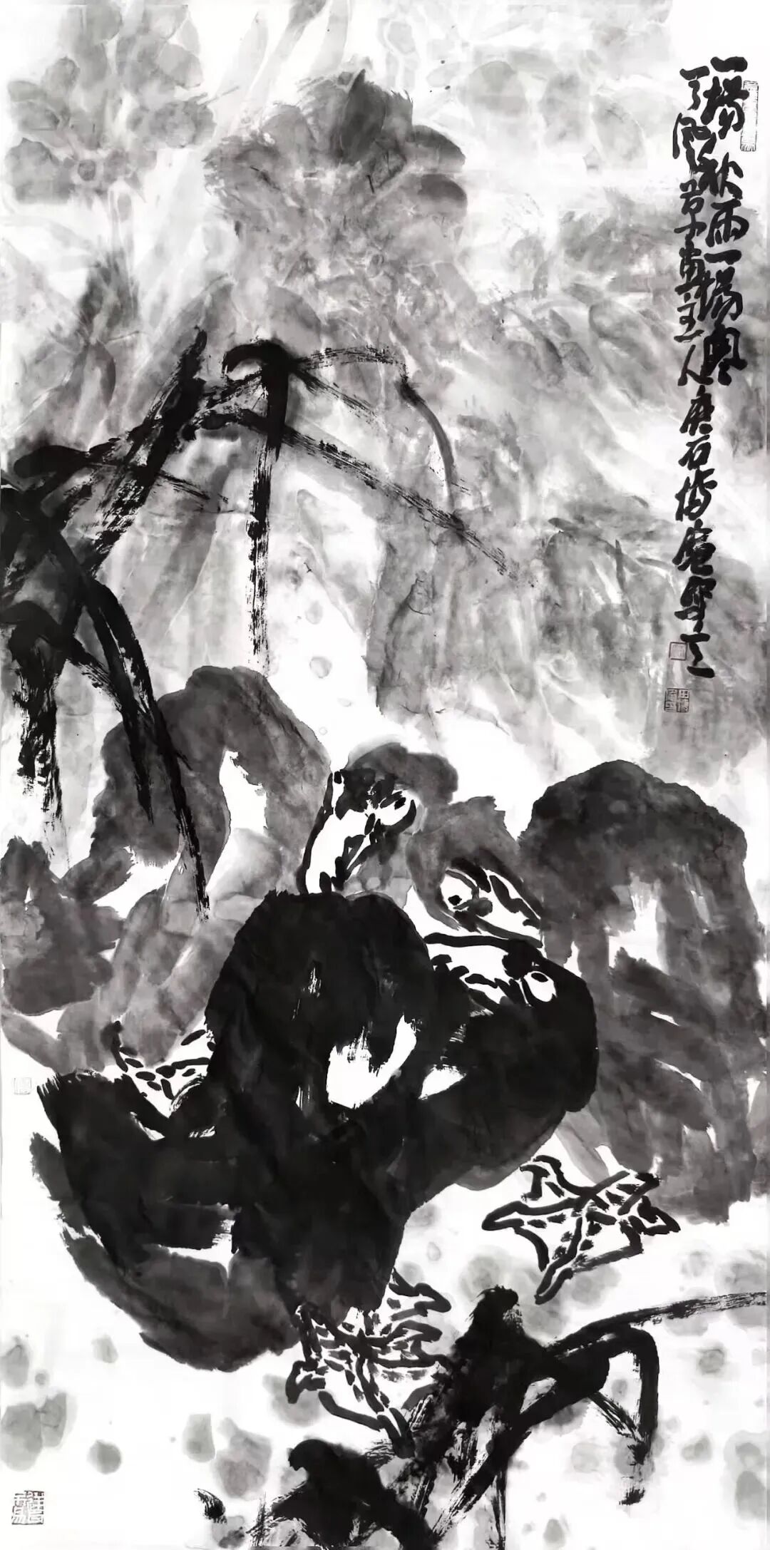 三、 显现与生成: “神与物游”的精神往来当心灵涤荡澄清,抵达“空心”之境时,奇迹便发生了:“灵觉显现”。此时,艺术家与外物(花、鸟、石、木)的关系发生了根本转变。主客对立消融,代之而起的是一种“神与物游”的共生共感状态。· “神游”:是艺术家的精神突破形骸局限,与自然万物的内在生命律动相感通。观田博庵之作,其笔下荷塘的苍浑、藤蔓的盘虬、禽鸟的桀骜,皆非静态物象的摹写,而是灌注了画家生命体验的、正在“生长”与“呼吸”的生命体。这是一种精神层面的往来交融合一。