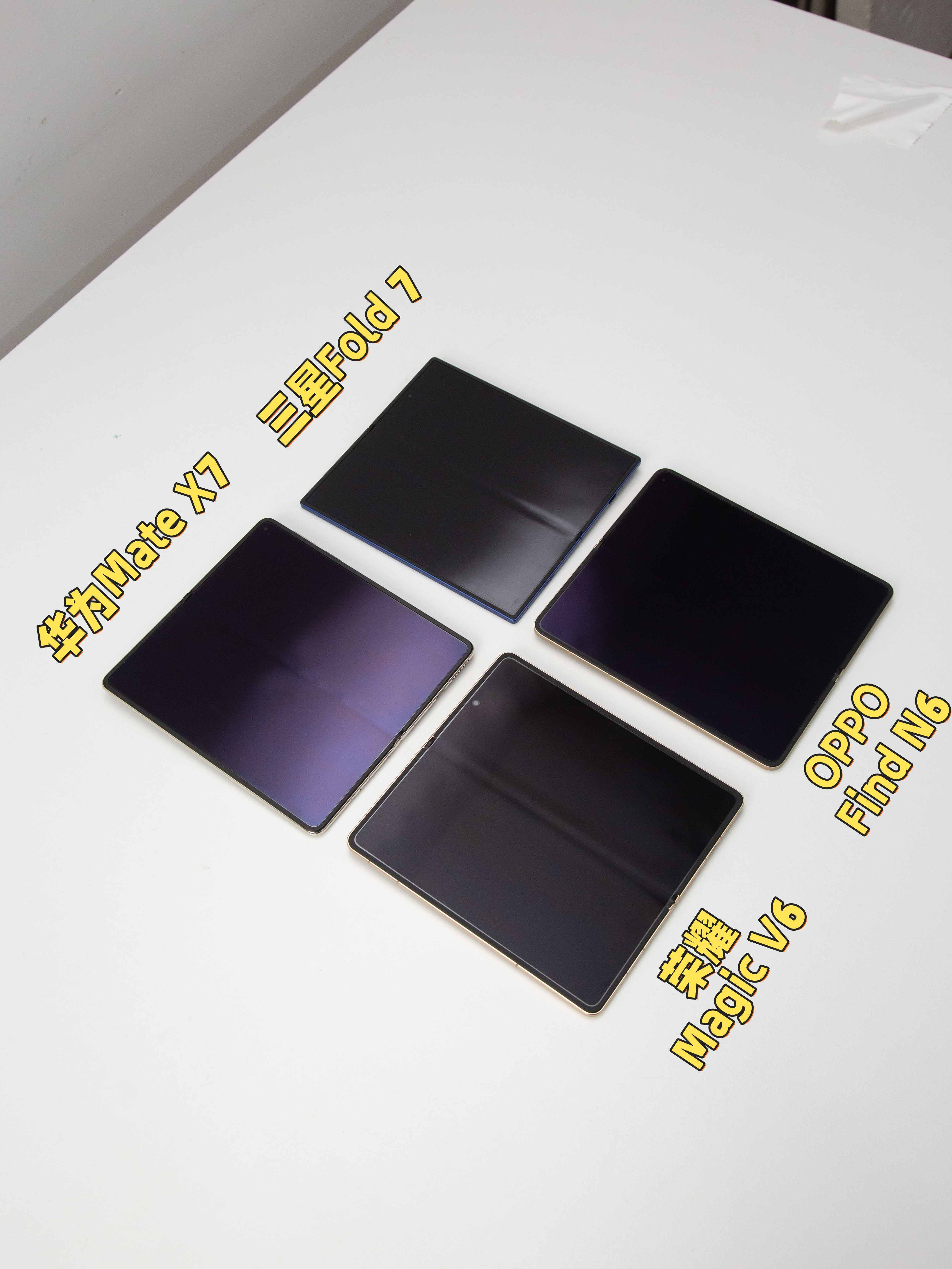 亮屏状态下,三星折痕够窄了,华为折痕够浅了。但跟N6这个“无感折痕”放一起,它们那道痕突然就明显得不行...