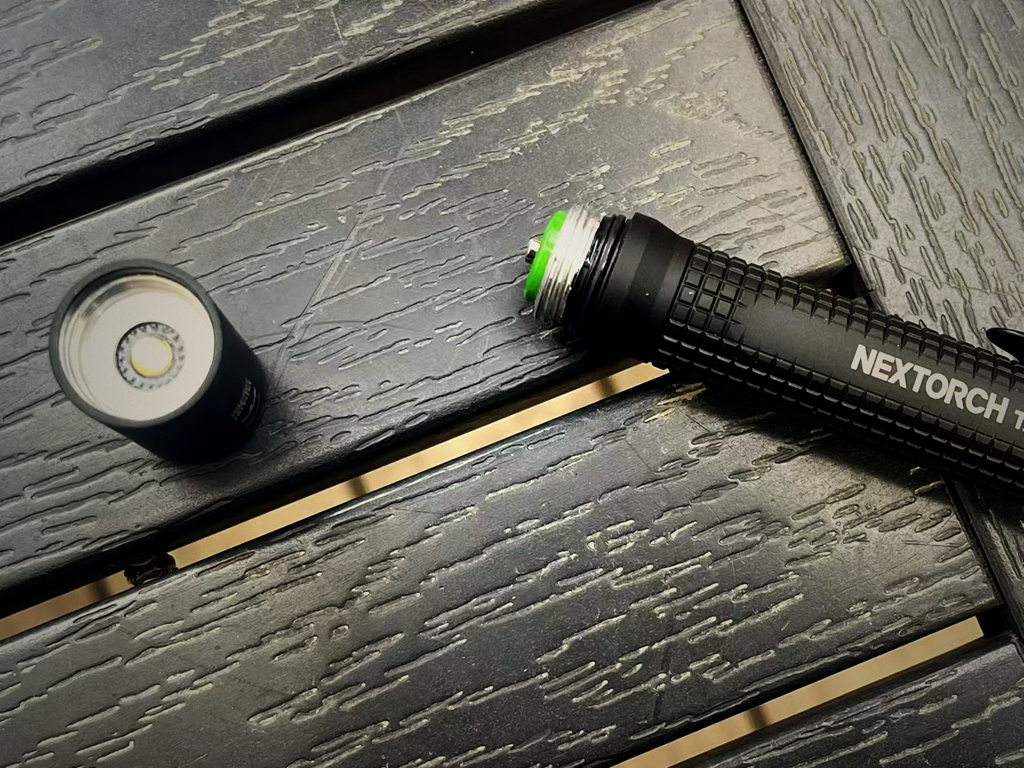 TA22的电池仓开口比较别致,设在灯头处,而不是常见的尾部。拧下灯头,就能看见电池仓上的防水橡胶环,和仓内10880电池。
