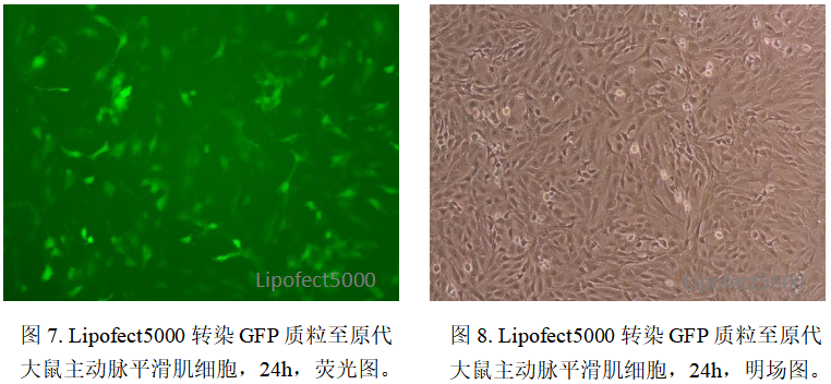 细胞毒性极低,保障转染细胞生理功能完整。Lipofect5000 的核心创新在于采用可降解生物纳米材料,这类材料进入细胞后可在胞内环境中快速降解为无毒或低毒的代谢产物,避免了传统试剂的蓄积毒性,转染后细胞死亡率仅为10%左右,与空白对照组无显著差异。这一低毒性优势使其成功应用于对转染试剂极为敏感的原代细胞,例如在原代大鼠主动脉平滑肌细胞转染实验中,既能实现80%以上的转染阳性率,又能维持细胞正常生理状态,破解了传统试剂在原代细胞转染中效率与毒性难以平衡的难题。